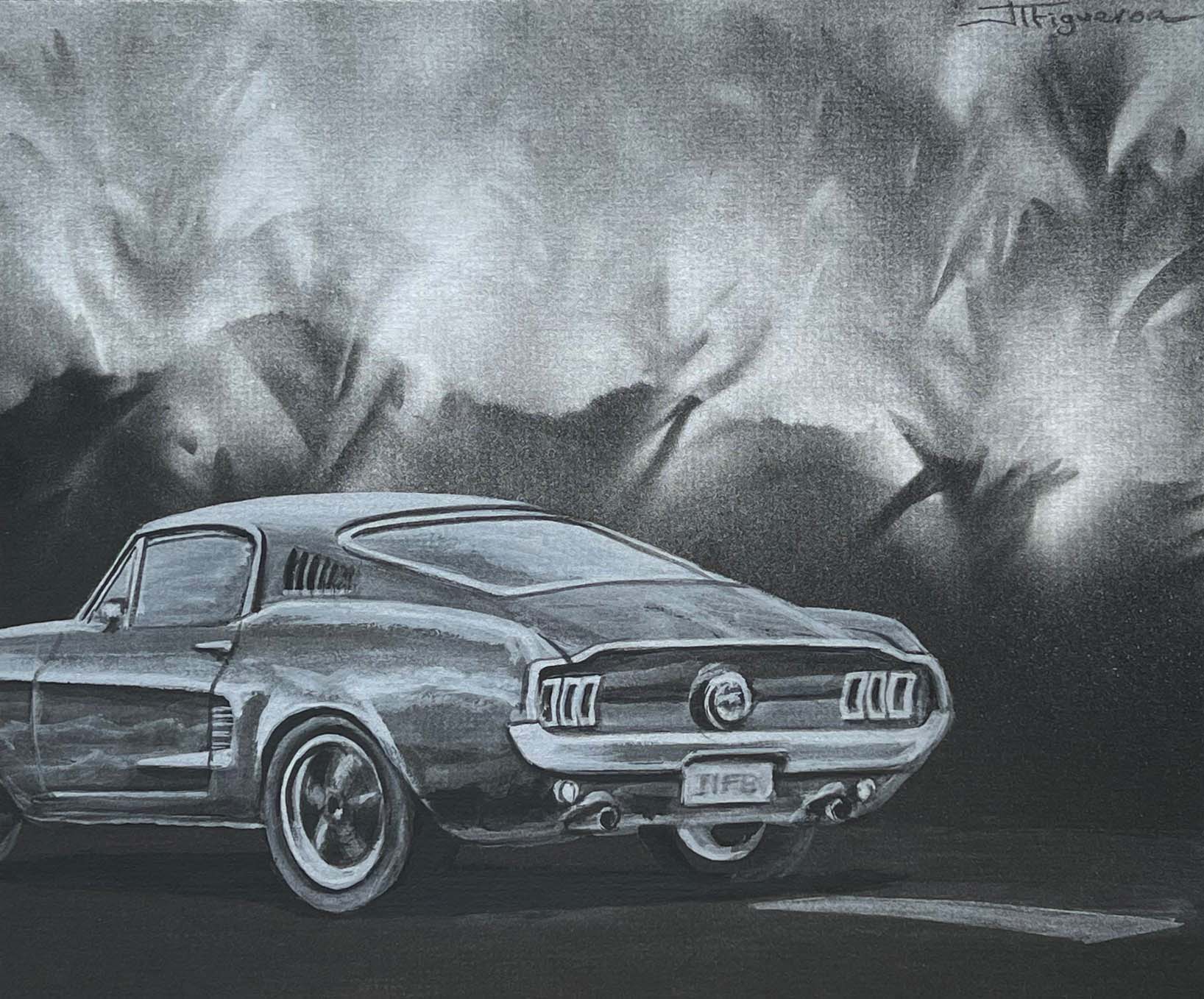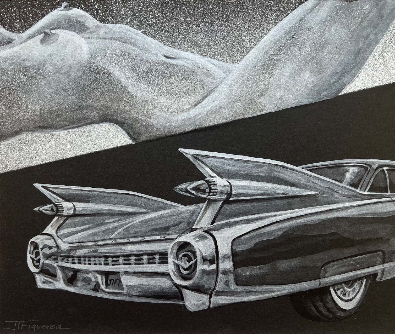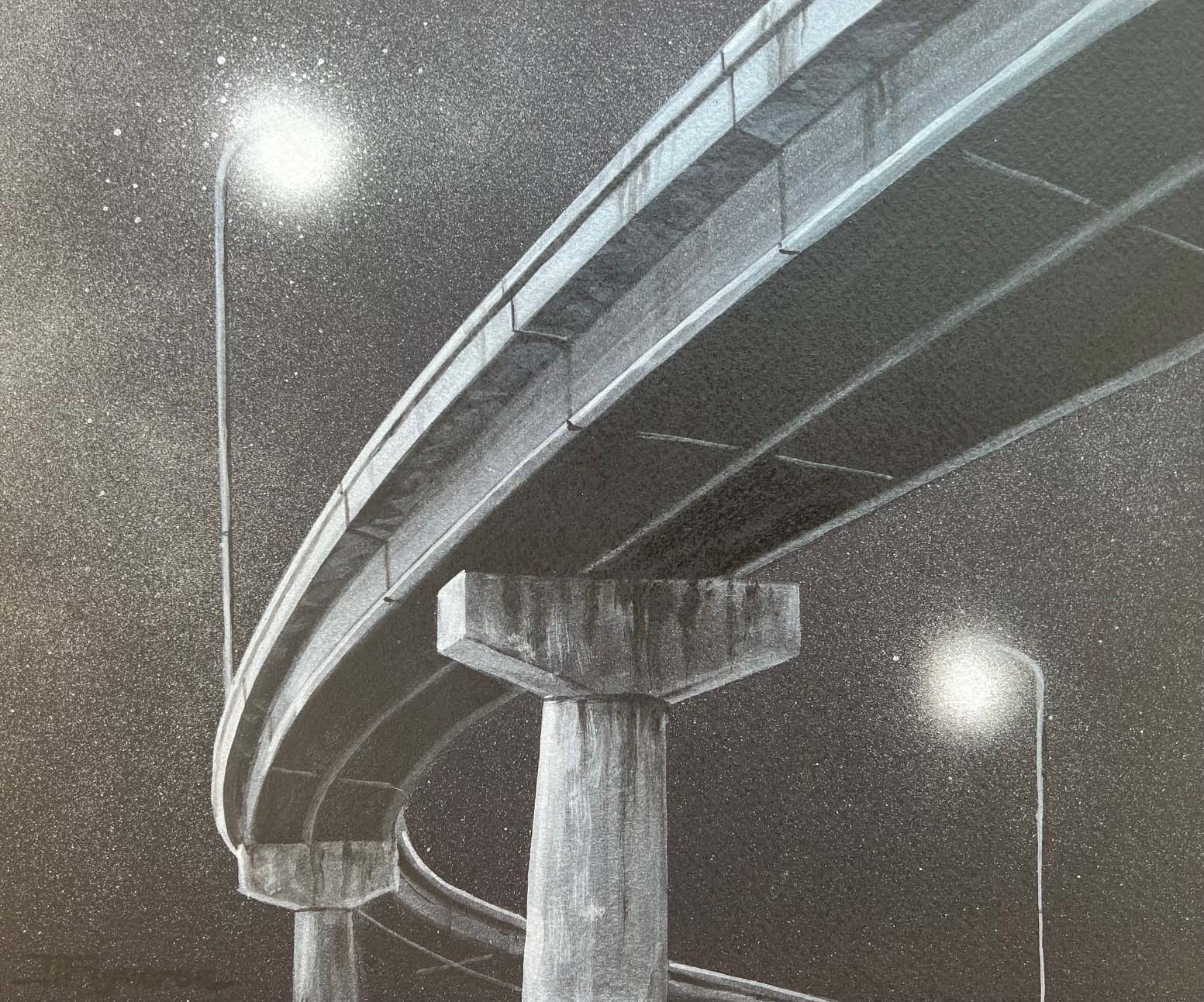 Lost Highway. Silver Paint on Black Paper. 10 x 12 inches.