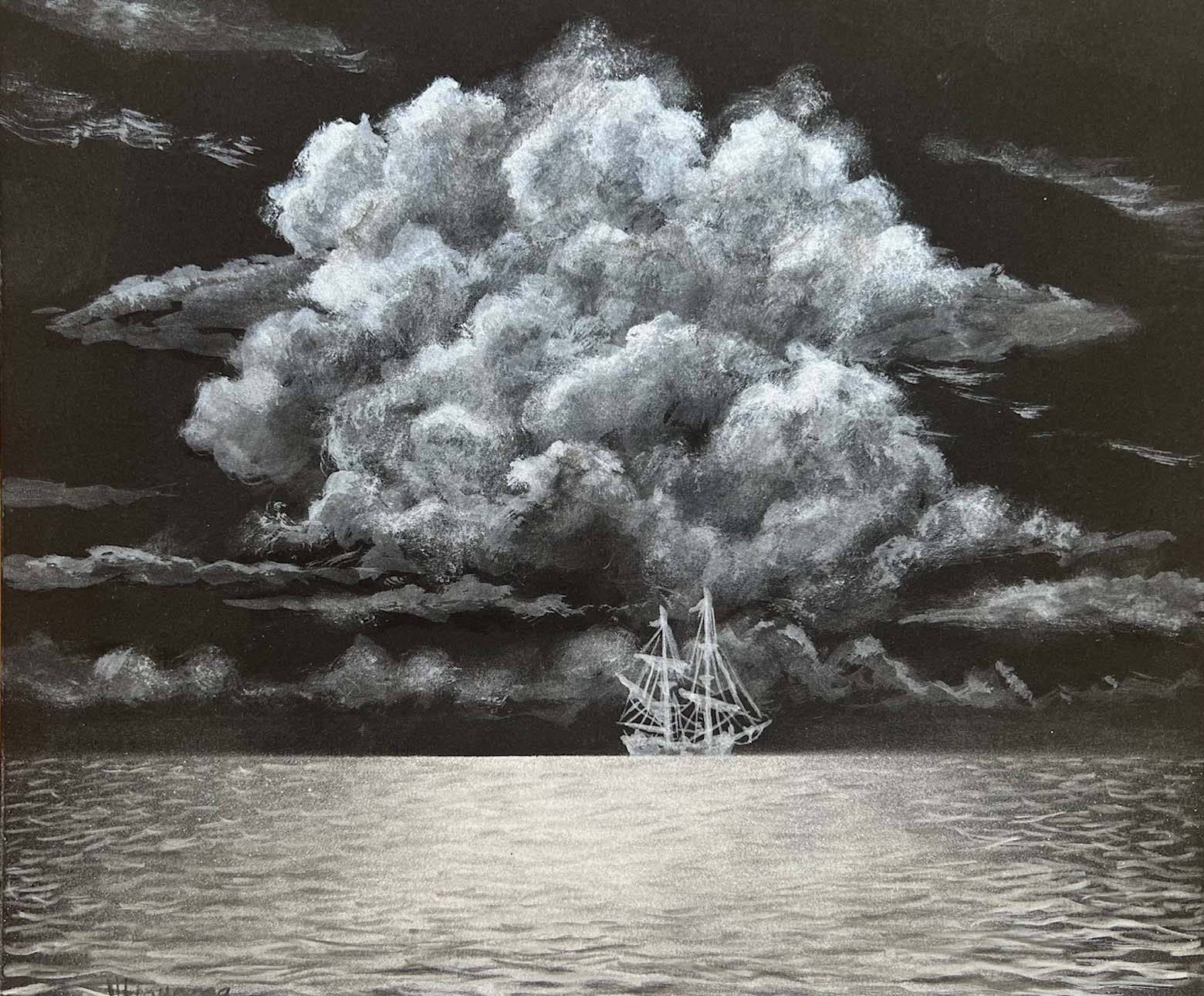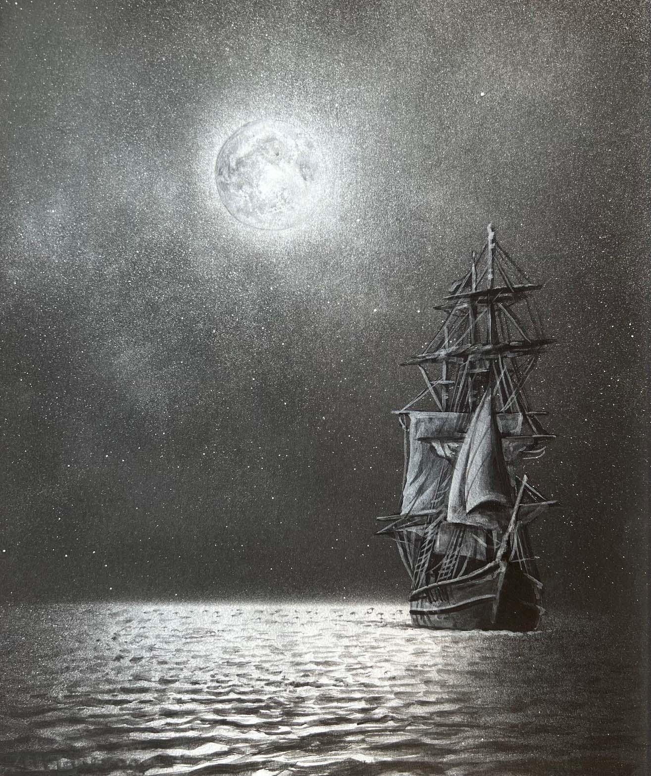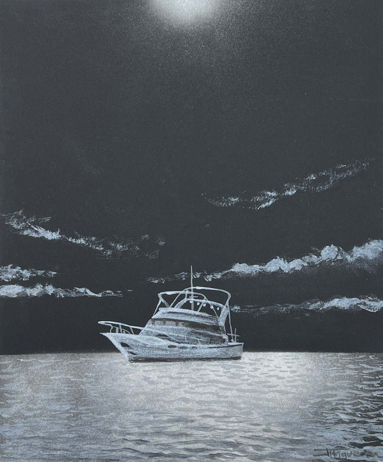 Sailing to Amalfi. Silver Paint on Black Paper. 10 x 12 inches.