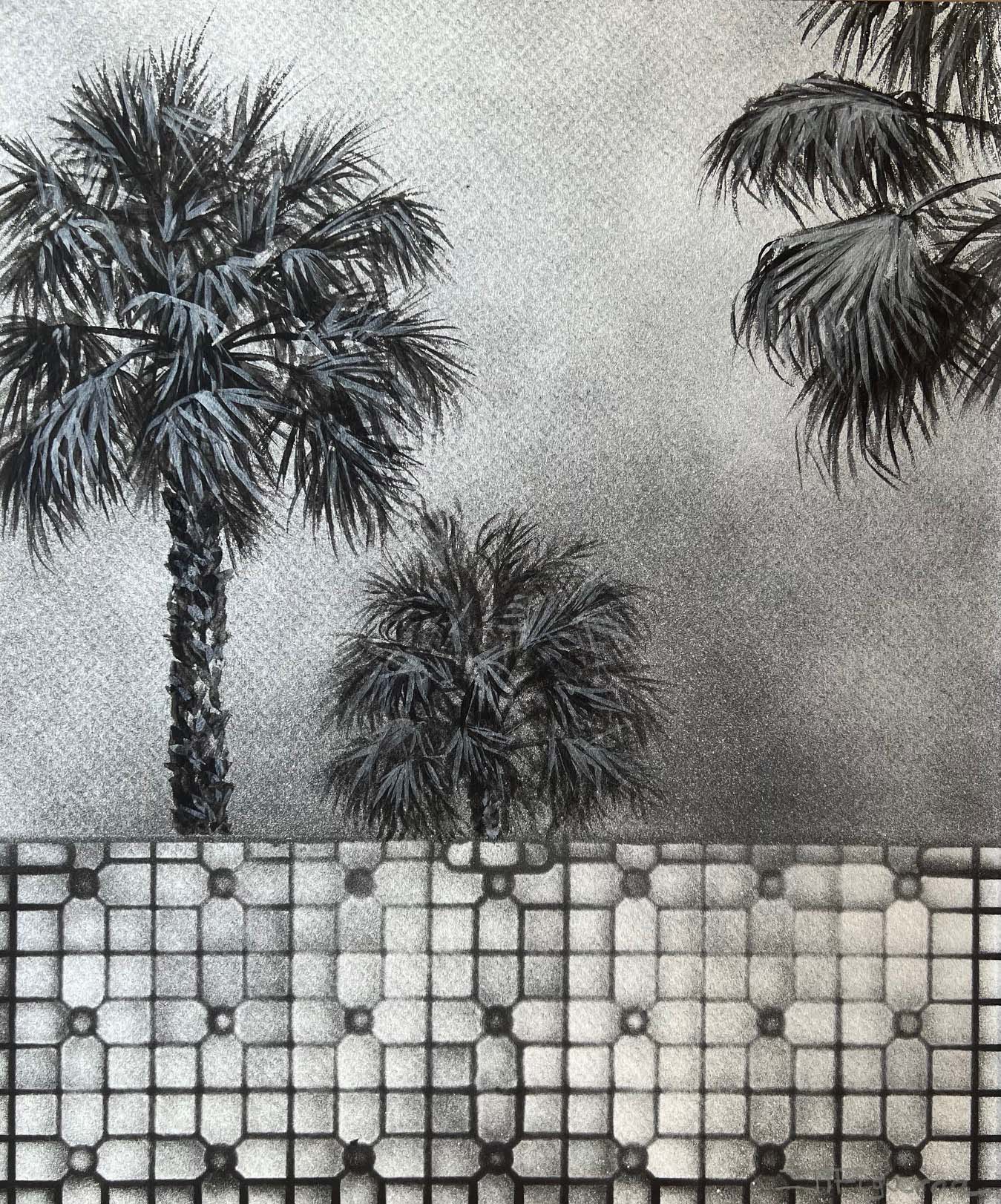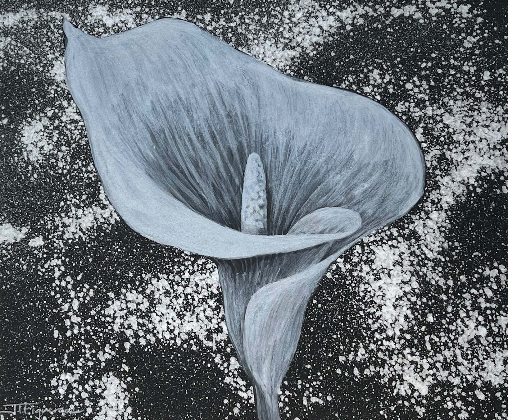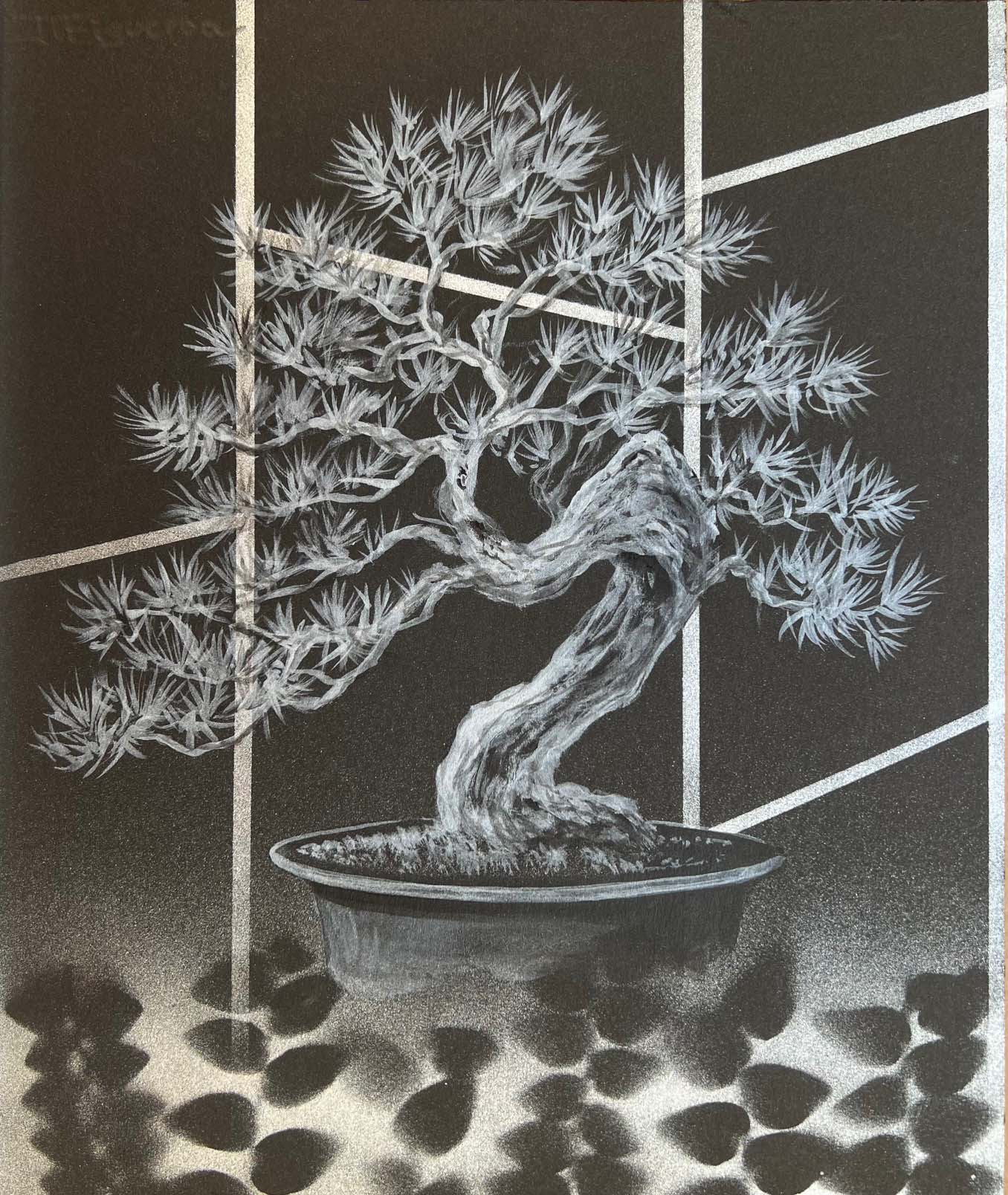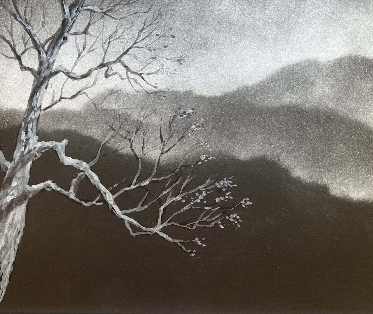 Sunset Whispers. Silver Paint on Black Paper. 12 x 10 inches.