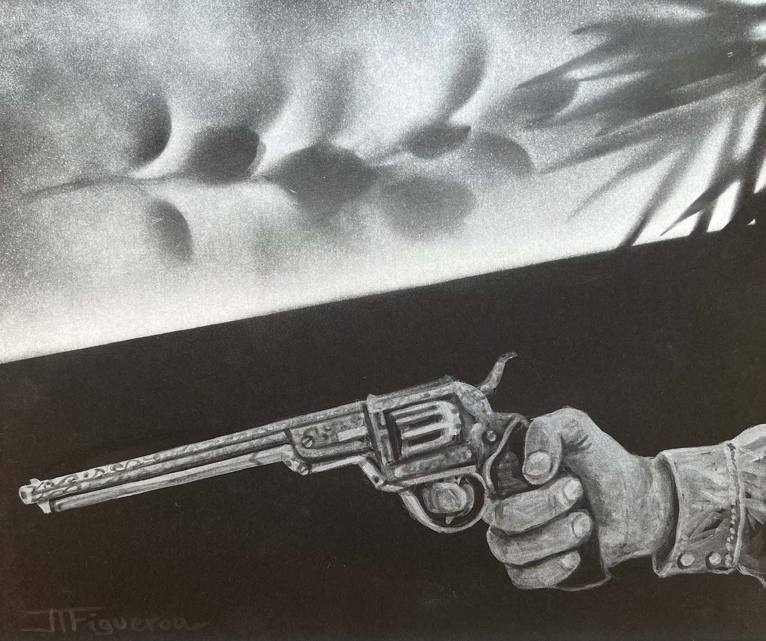 Peacemaker. Silver Paint on Black Paper. 10 x 12 inches.