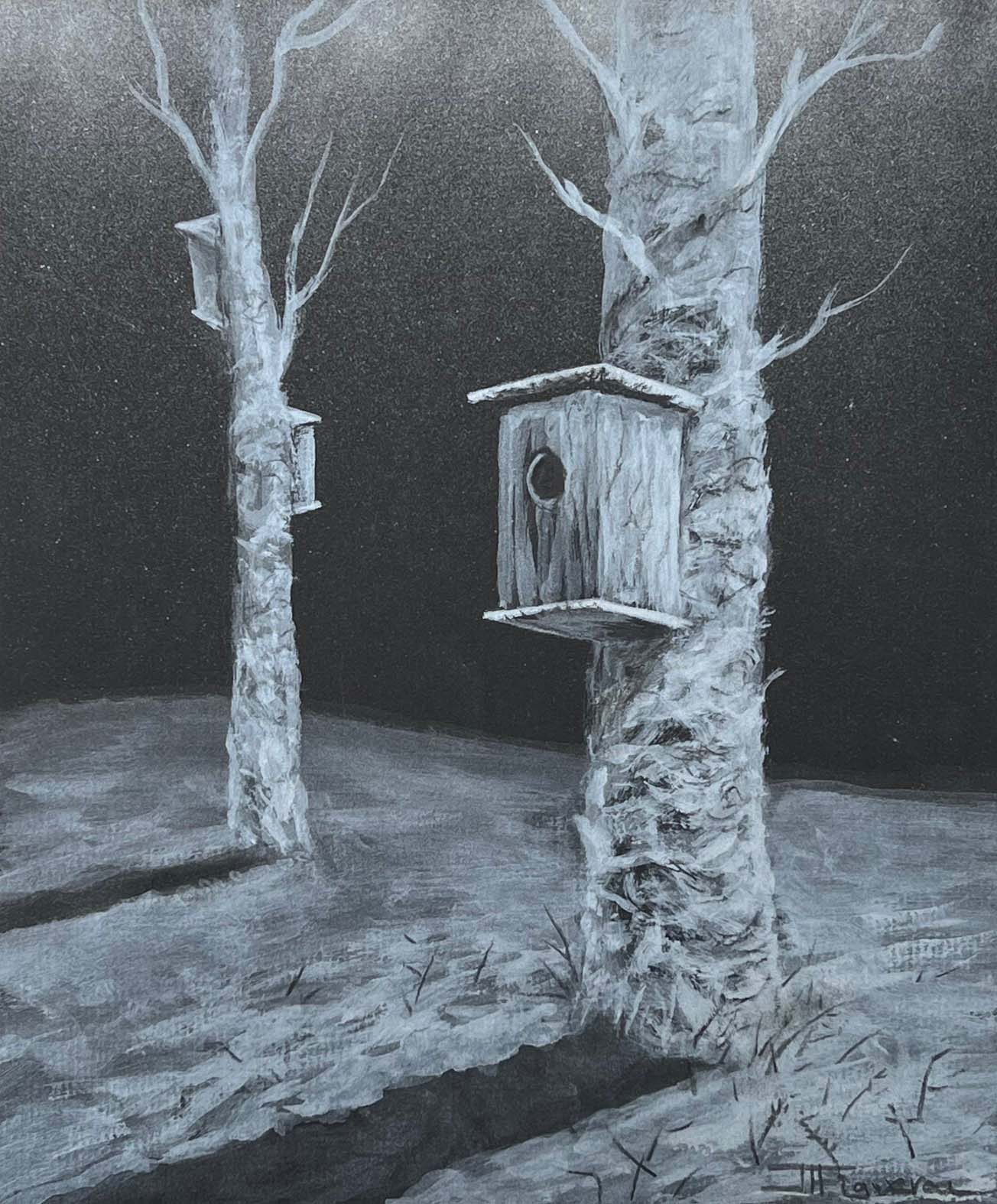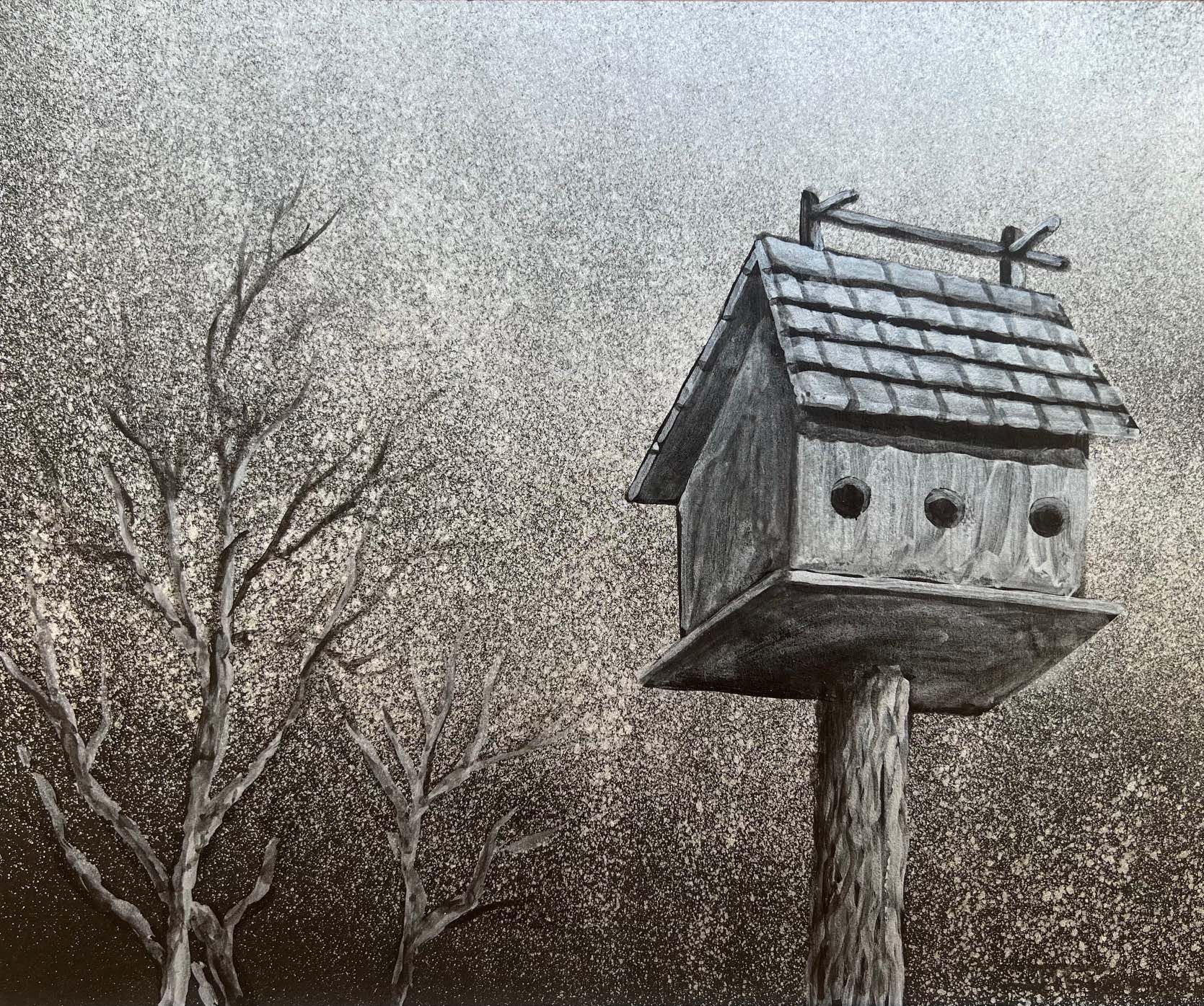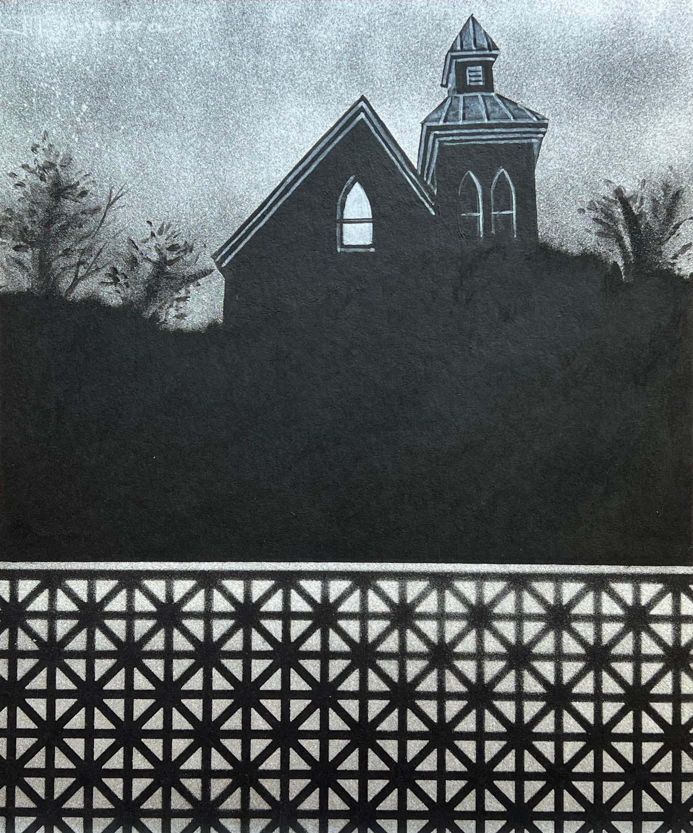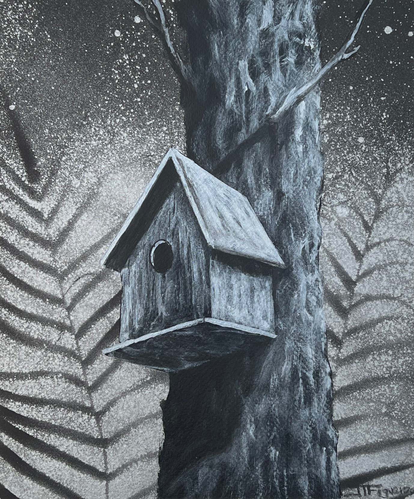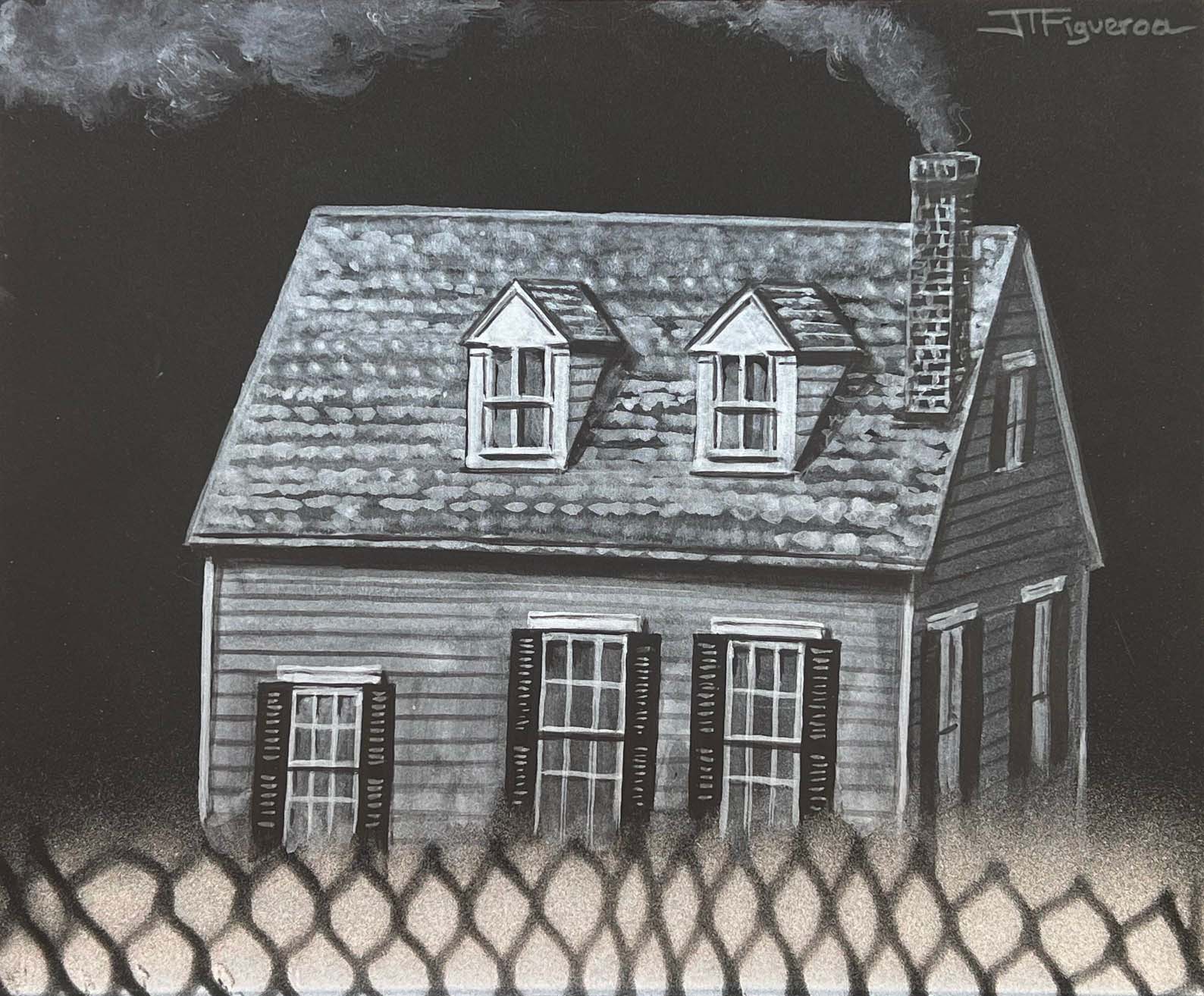 Almost Home. Silver Paint on Black Paper. 10 x 12 inches.