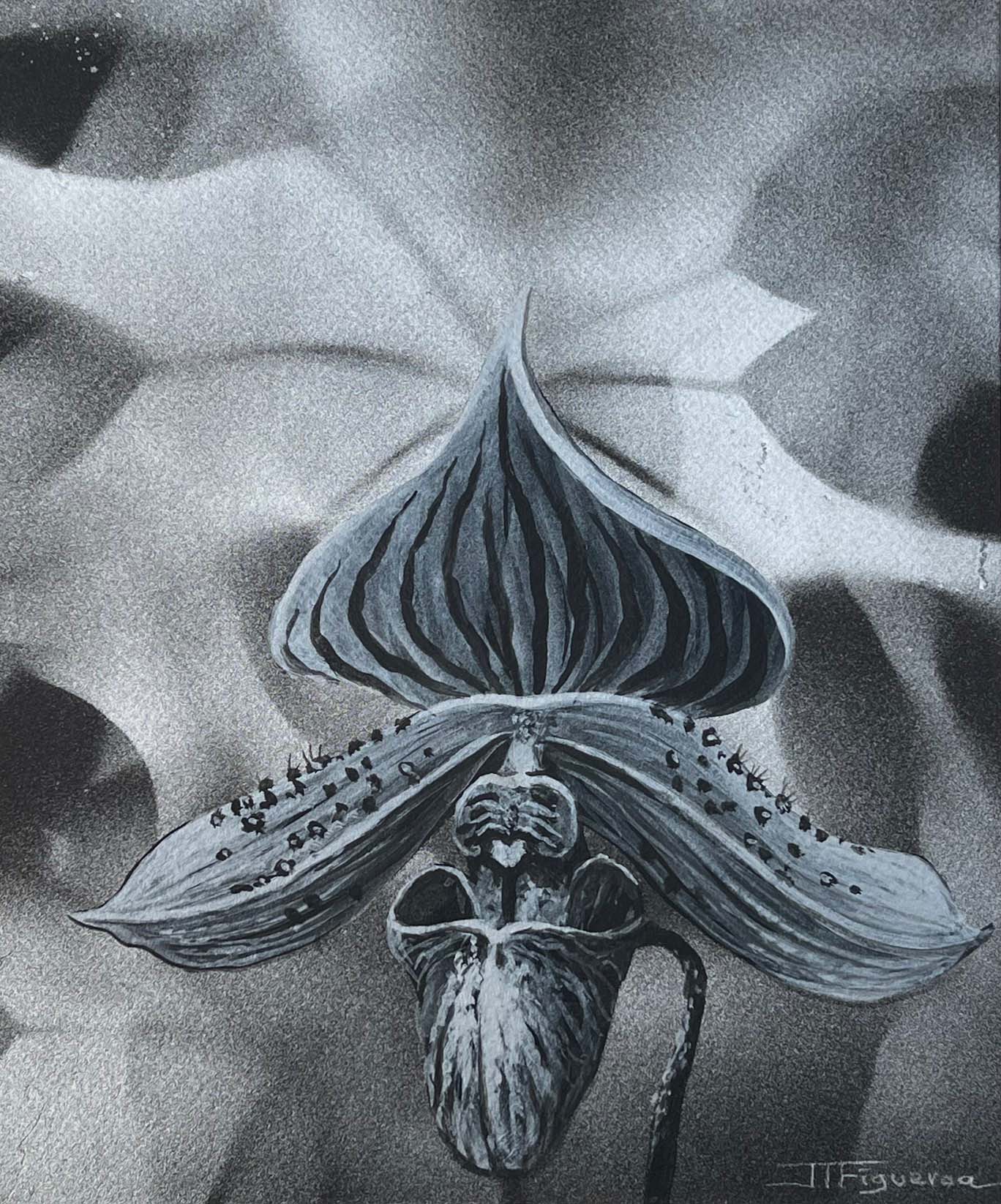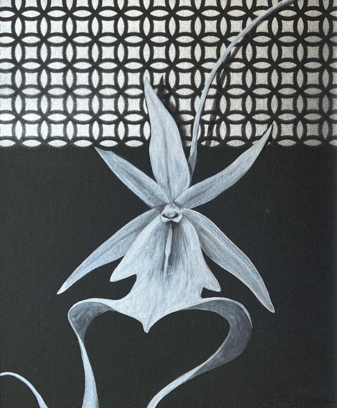 Kalopsia. Silver Paint on Black Paper. 12 x 10 inches.