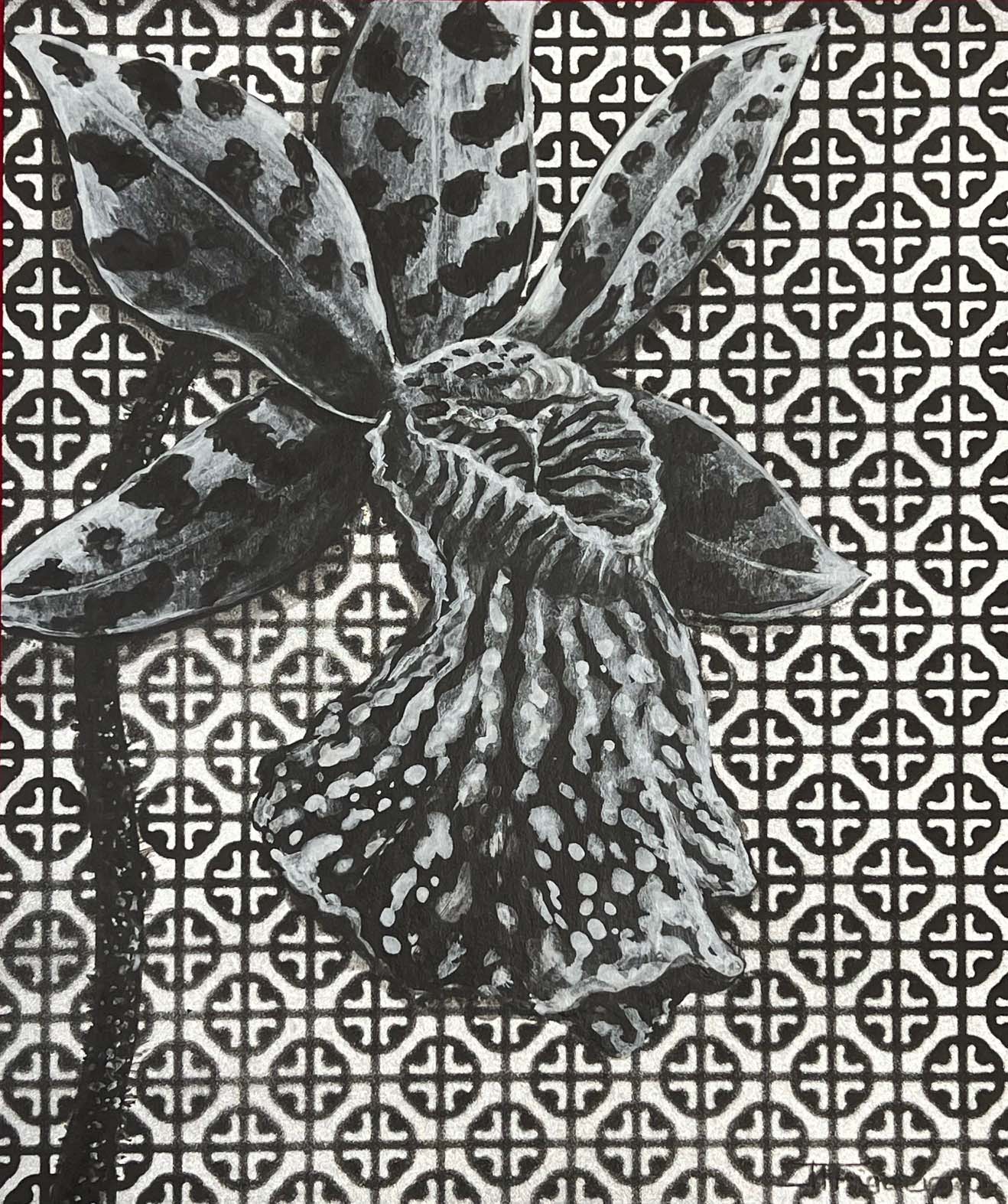 Camouflage. Silver Paint on Black Paper. 12 x 10 inches.