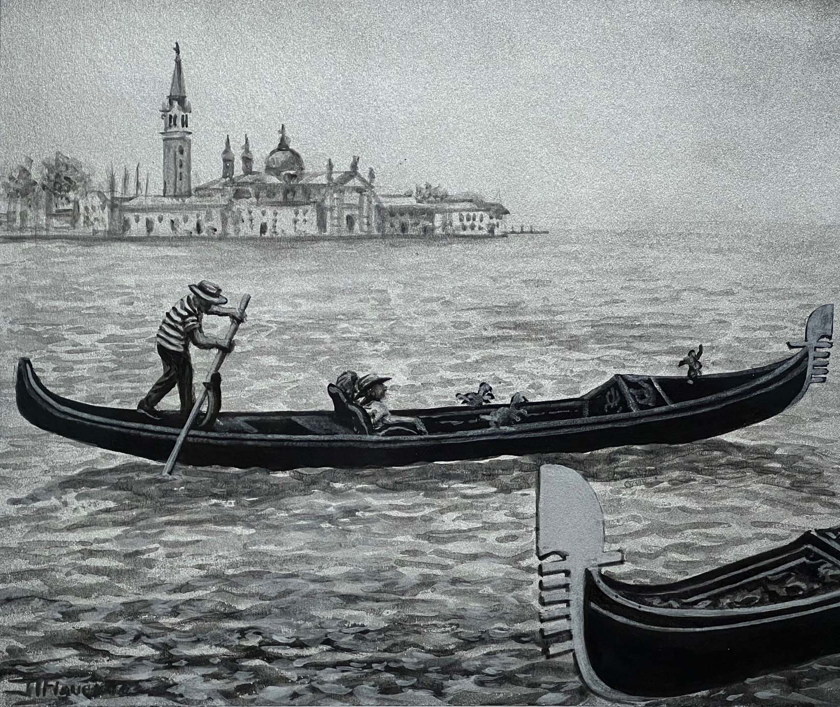 Leaving the Giardini Reali. Silver Paint on Black Paper. 10 x 12 inches.