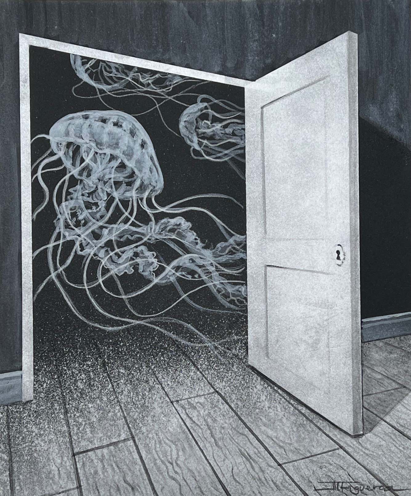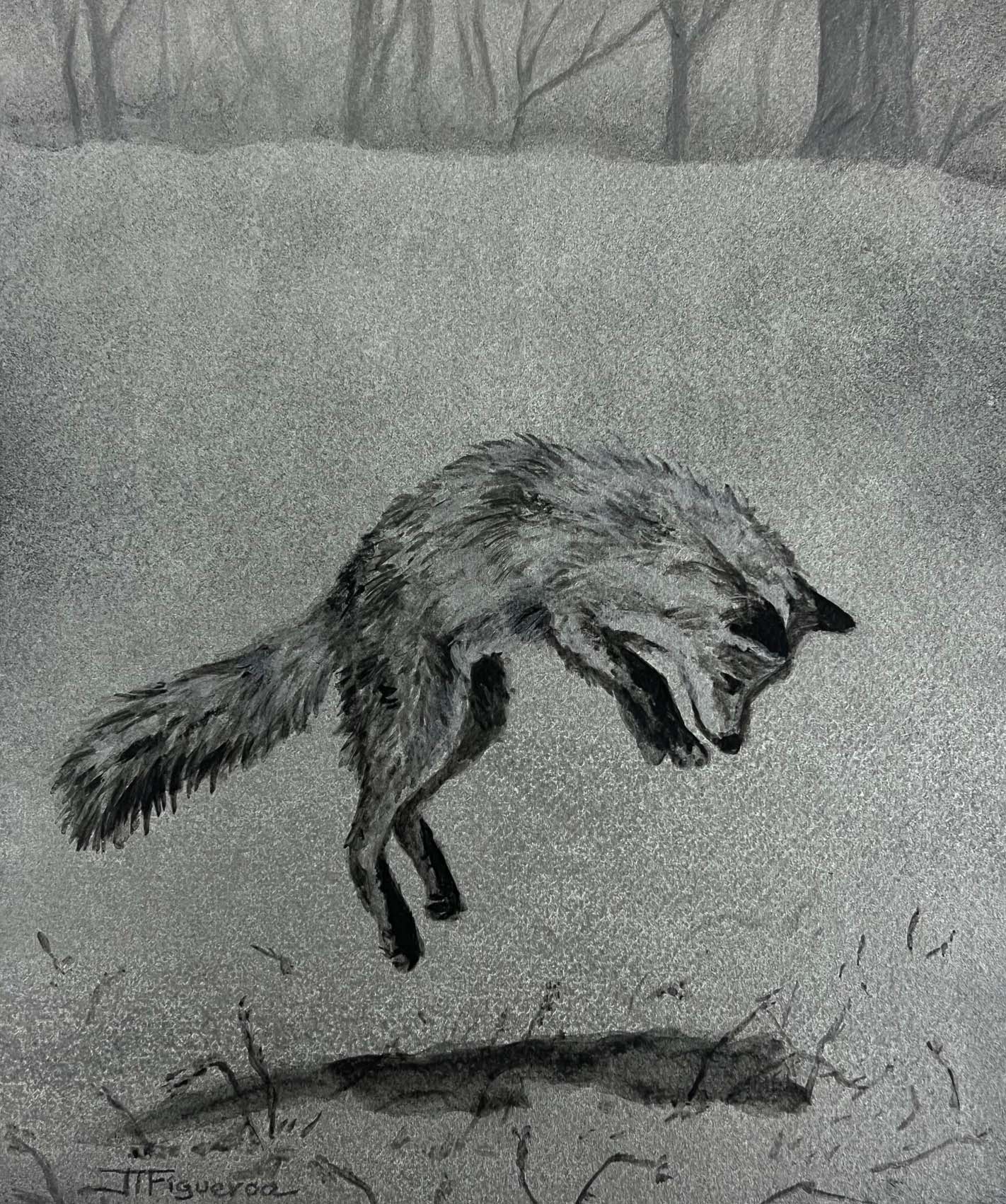 The Great Escape. Silver Paint on Black Paper. 10 x 12 inches.