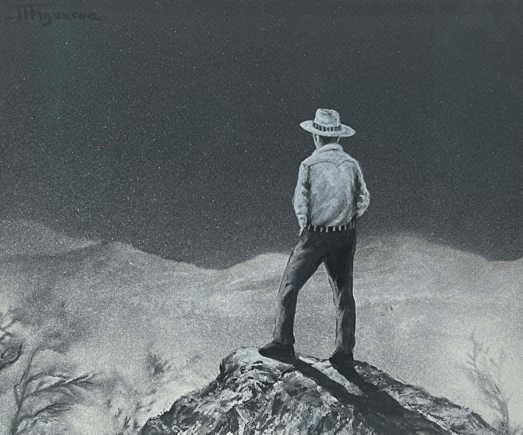The Wanderer. Silver Paint on Black Paper. 10 x 12 inches.