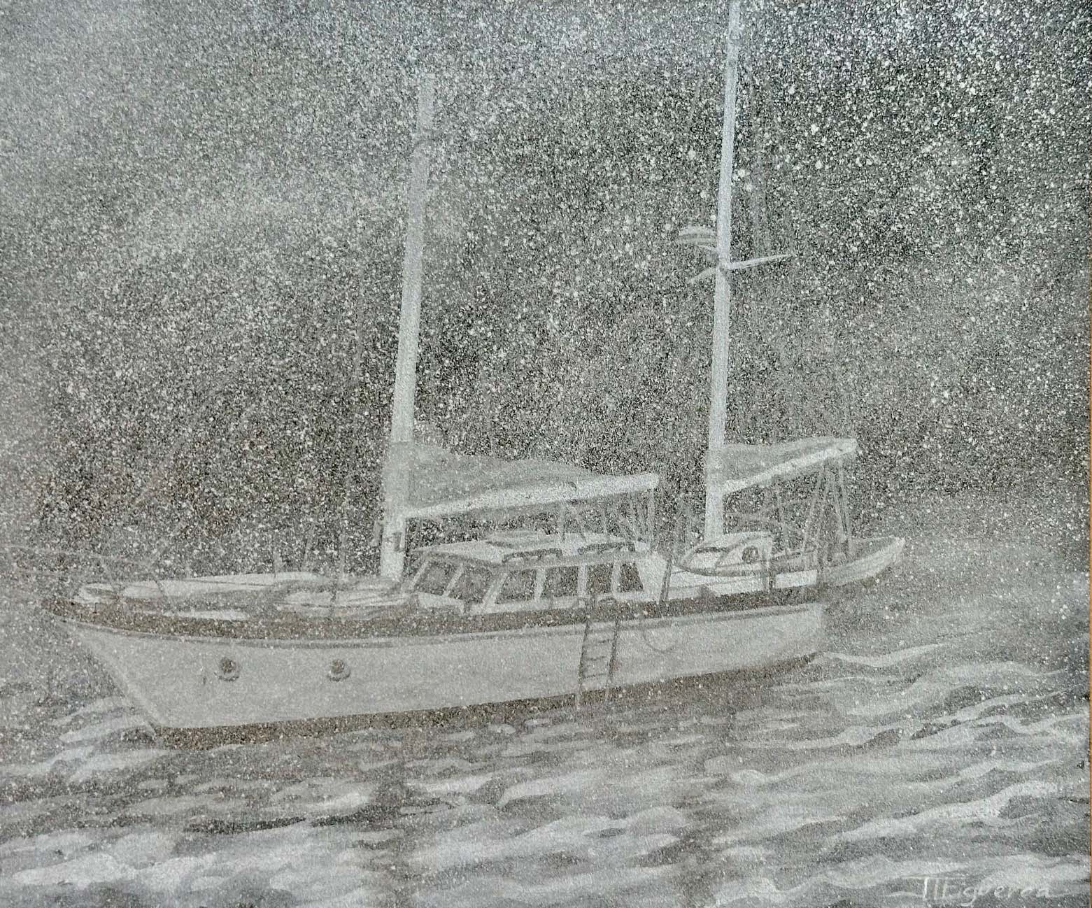 Tempest. Silver Paint on Black Paper. 10 x 12 inches.