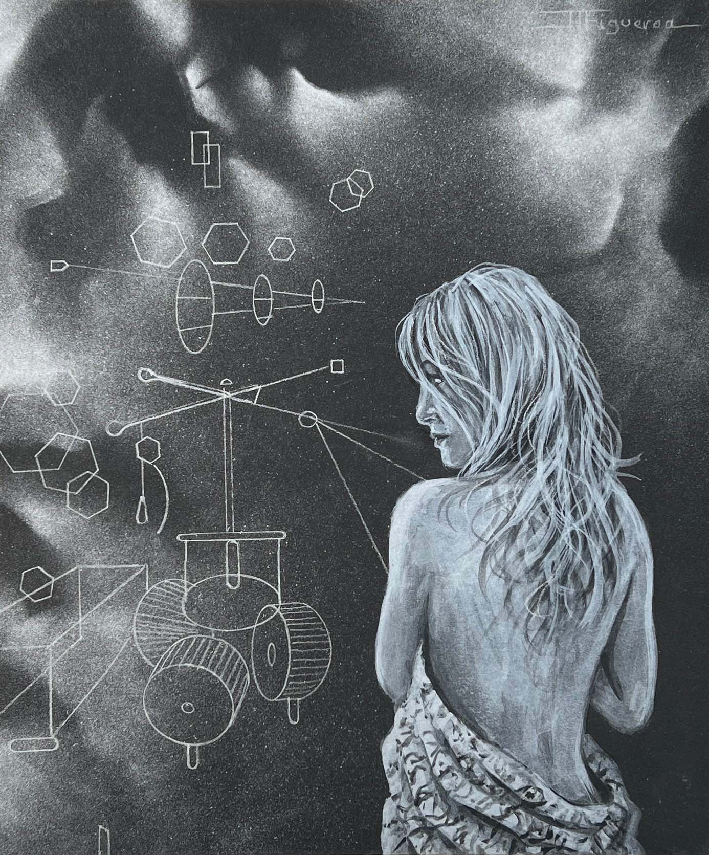 The Idea of You. Silver Paint on Black Paper. 10 x 12 inches.