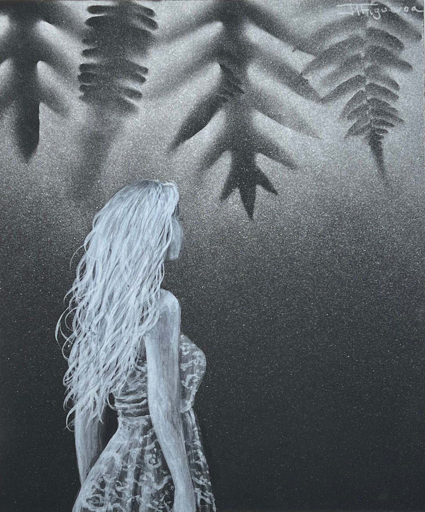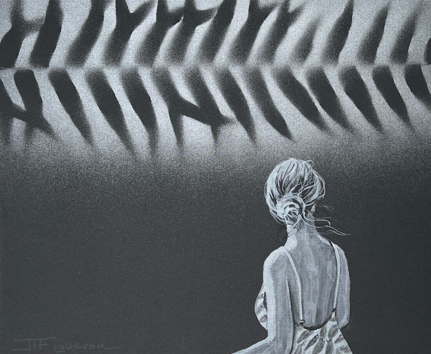 Daydreaming. Silver Paint on Black Paper. 12 x 10 inches.