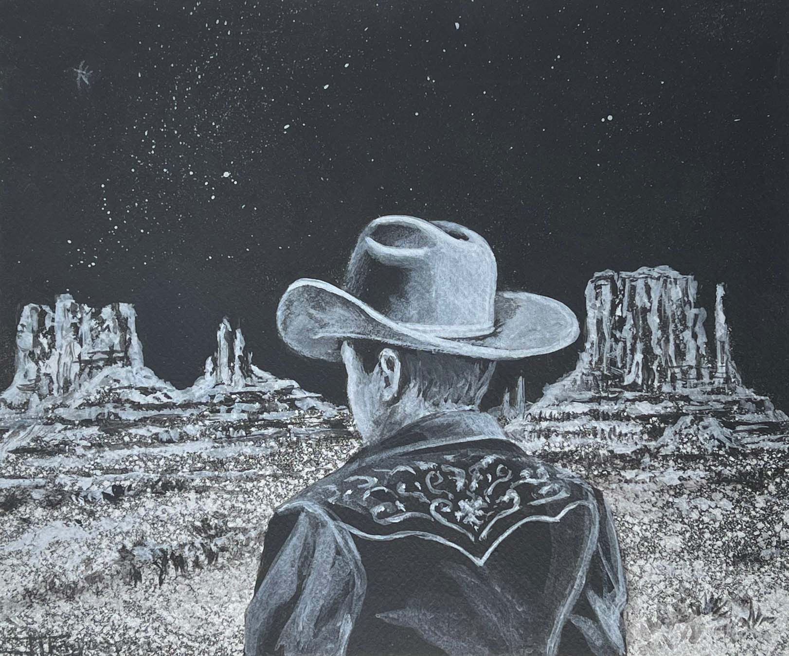 The Long Rider. Silver Paint on Black Paper. 10 x 12 inches.