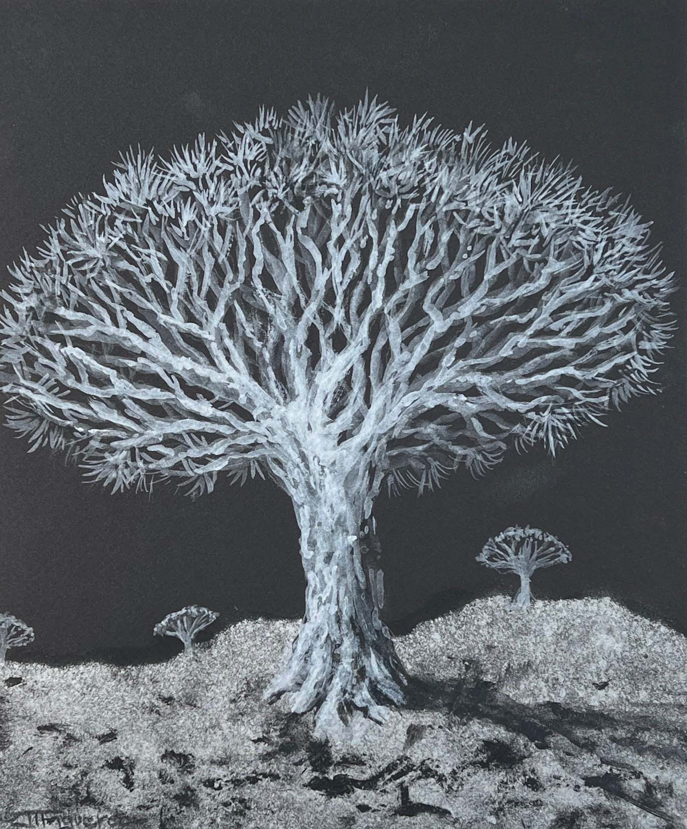 The Enchanted Land. Silver Paint on Black Paper. 12 x 10 inches.