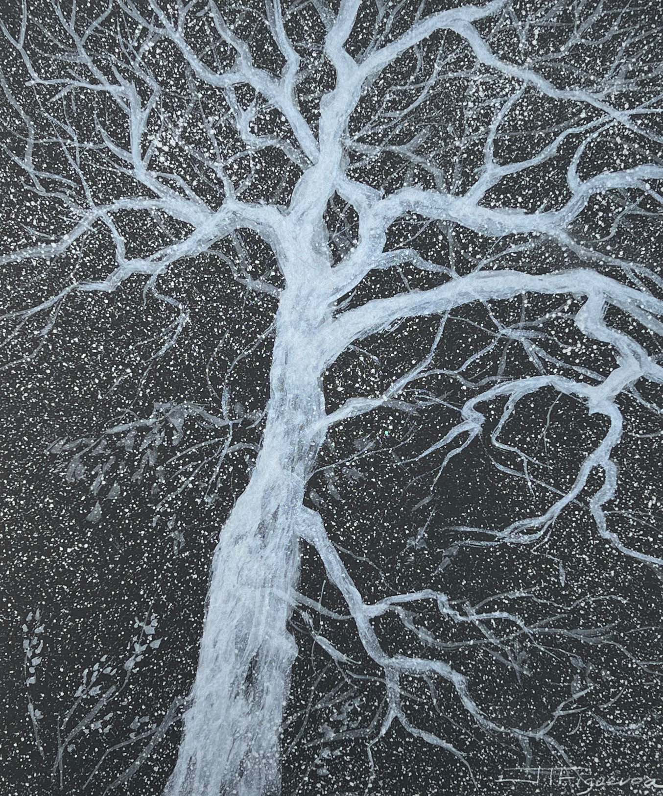 Winter’s Music. Silver Paint on Black Paper. 10 x 12 inches.