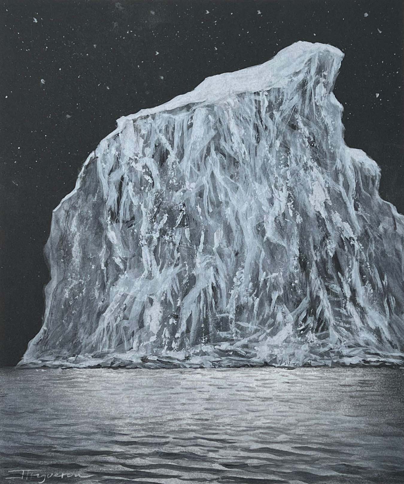 Frozen Titan. Silver Paint on Black Paper. 12 x 10 inches.